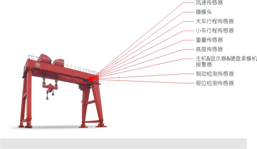 1.起重機(jī)運(yùn)行狀態(tài)監(jiān)測、顯示及記錄,包括有起重機(jī)的起升高度(下降深度)、天車行程、大車行程、重量、制動狀態(tài)等數(shù)據(jù),對起重機(jī)運(yùn)行過程中的數(shù)據(jù)可以記錄在本地監(jiān)控儀(大于30天)中,滿足起重機(jī)安全事故分析及起重機(jī)運(yùn)行效率分析的要求;